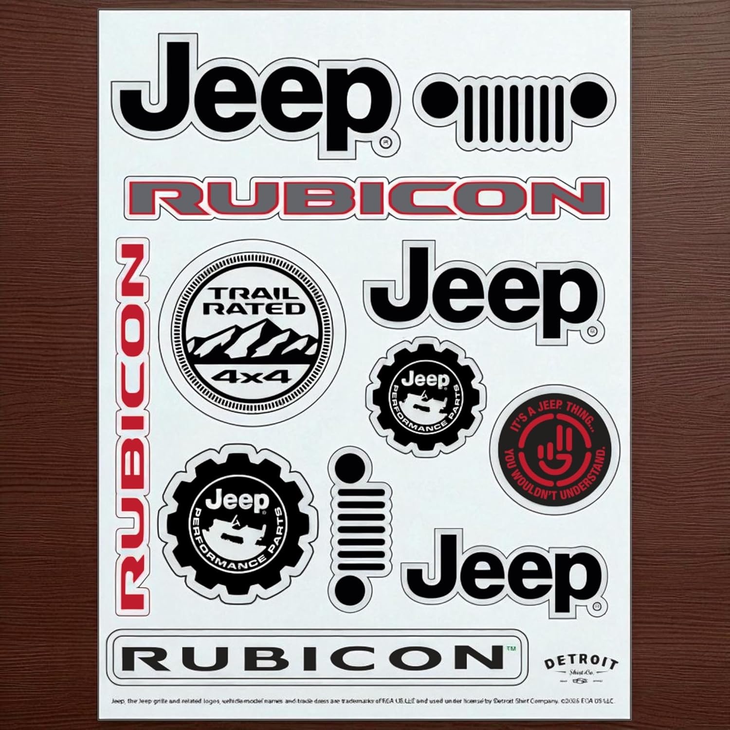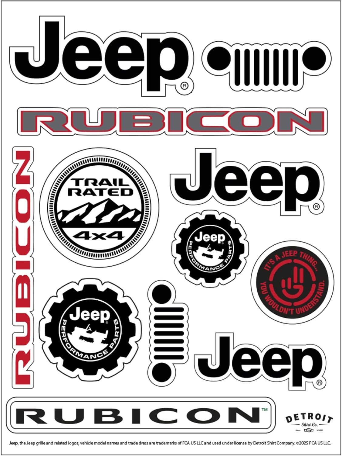 Jeep, the Jeep grille and related logos, vehicle model names, and trade dress are trademarks of FCA US LLC and used under license by Detroit Shirt Company. 2025 FCA US LLC.