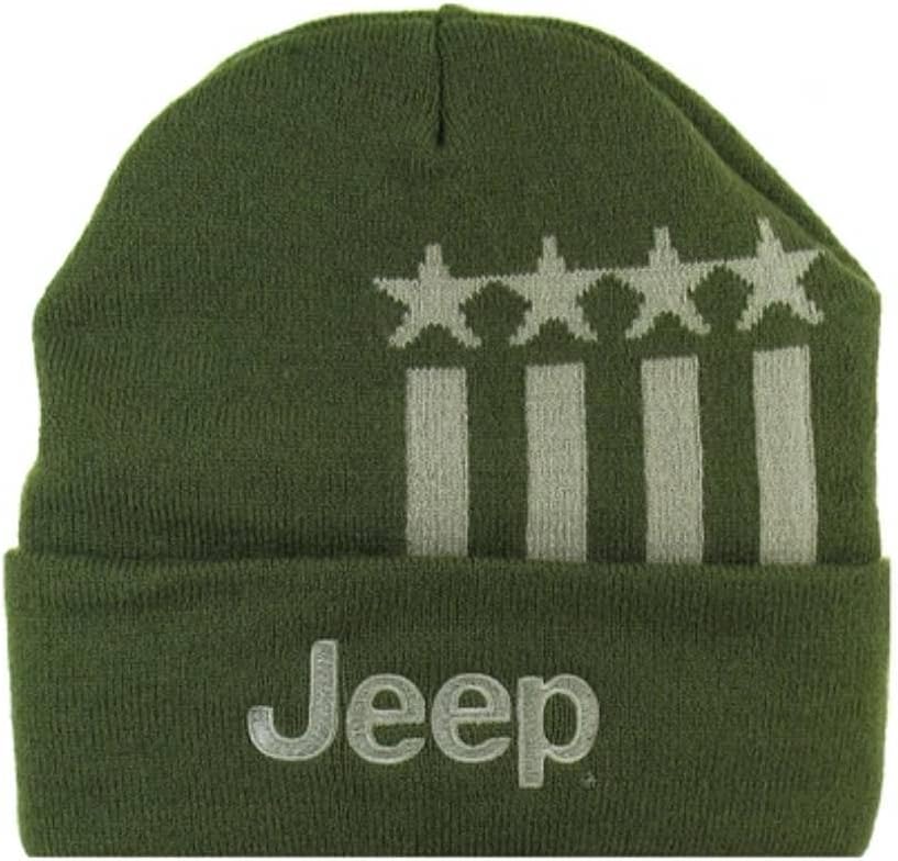 Jeep Stars and Stripes Flip Knitted Beanie Hats for Men or Beanie Women Military Green