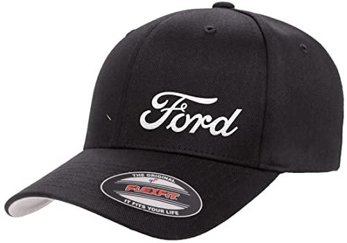 Ford Motor Co Script Logo New Side Panel Fully Embroidered Flexfit 6277 Athletic Baseball Fitted Hat Cap