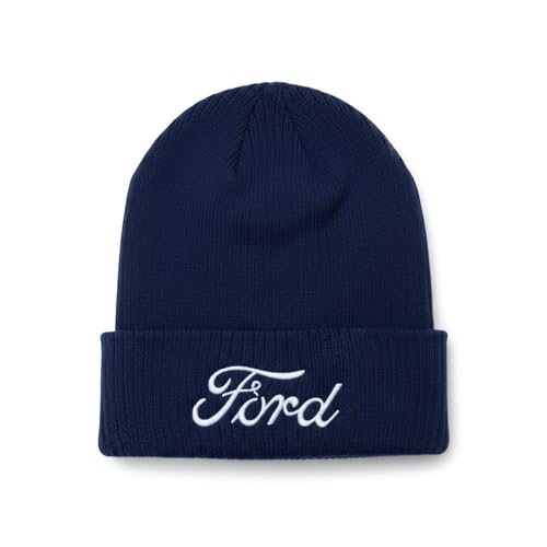 Ford Script Beanie – Navy Blue Acrylic Knit Winter Hat – Officially Licensed Ford Motor Company Merchandise