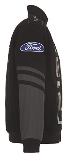 Men’s Ford F150 truck jacket features a racing style design with embroidered and material filled F150 emblems on the front, back, shoulders and sleeves. This jacket features a snap-up front, 2 front hand pockets, 2 inside chest pockets, satin lining throughout and stretch knit cuffs and waistband. You’ve already got the nicest truck on the market now check out the nicest Ford F150 truck apparel from JH Design. When you open that little brown box from Amazon you’re going to find the coolest Ford F150 gift money can buy. When you put on this Ford F150 jacket you’ll feel how comfortable the jacket is and want to go for a ride. Now imagine getting out of your Ford F150 and everyone admiring your ride then seeing your brand new Ford F150 jacket that all true Ford F150 fans wear. High quality brushed cotton twill design. Professional Cleaning Only! Avoid getting wet. Body: 100% Cotton. Lining and Trim: 100% Polyester.