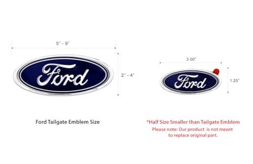 Ford Blue Oval Decorative plastic 3D emblem. Chrome coating with industrial strength 3M adhesive tape on the back. Has an easy grab pull tab to remove red film. Measures 3.00 x 1.25 inches