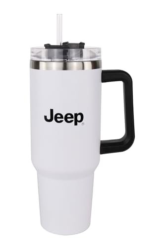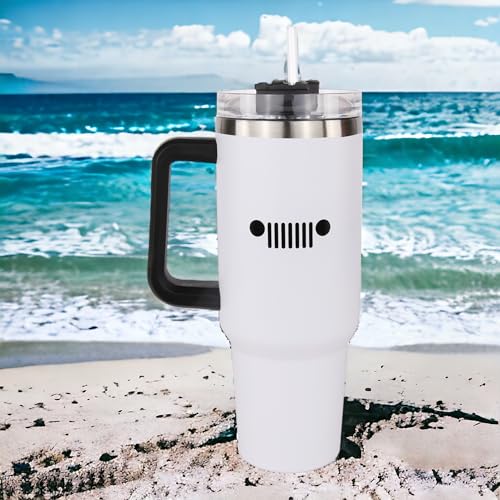 Jeep Text and Grille Logos 40 oz Insulated Travel Mug Tumbler with Handle | Double Wall Vacuum Sealed Stainless Steel Cup w/Straw and Lid