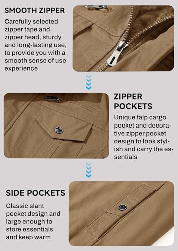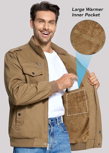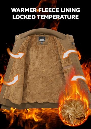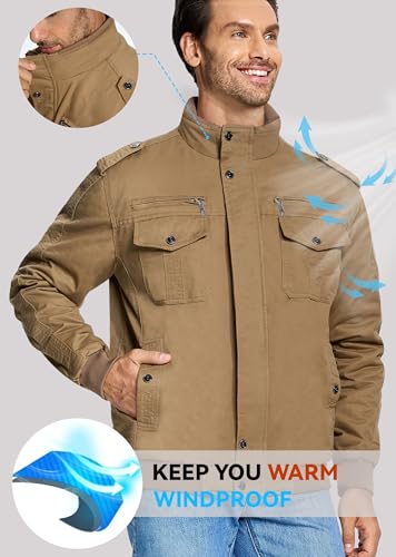 EKLENTSON Men’s Thick Thermal Winter Jacket with Multi Pockets Zip Front Fleece Lined Military Jacket for Men