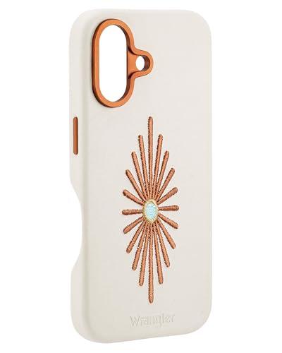 Wrangler® Leather Embroidered iPhone Case – Western Star, Compatible with iPhone (Cream, 16)
