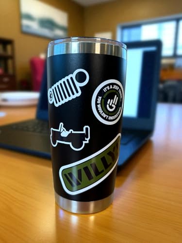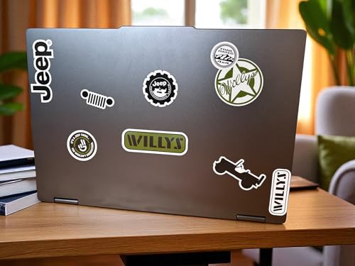 12 ICONIC WILLYS STICKERS – Includes classic Jeep Willys designs: vintage Jeeps, military star, grille logos, Trail Rated badge, and more.
